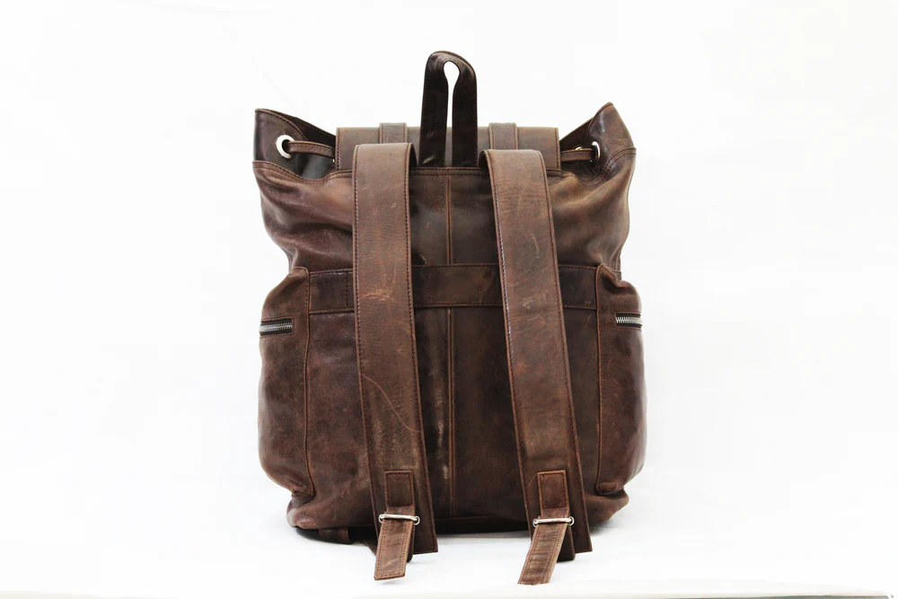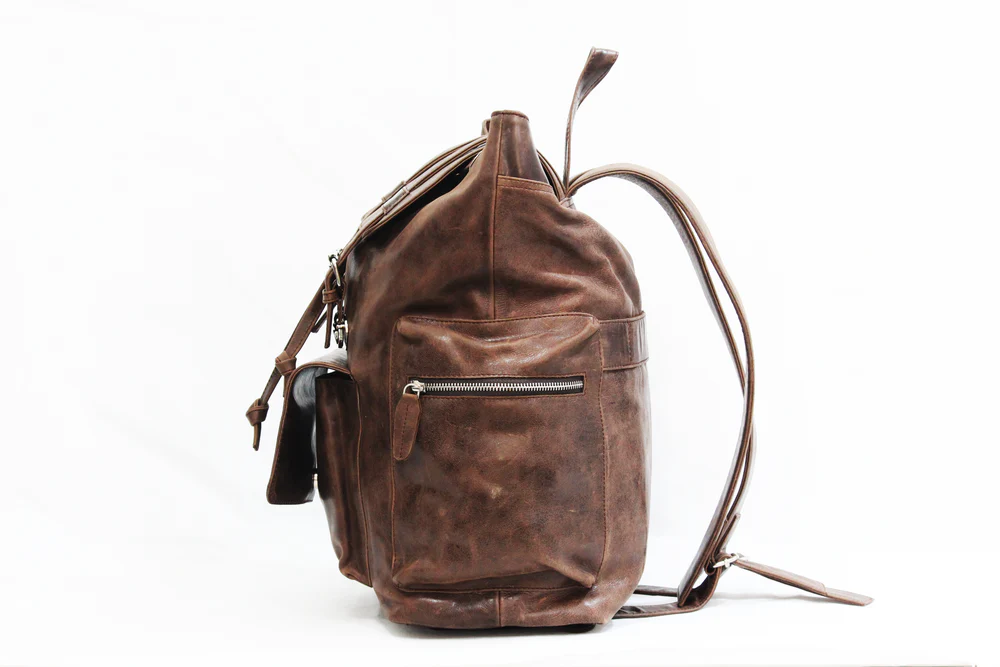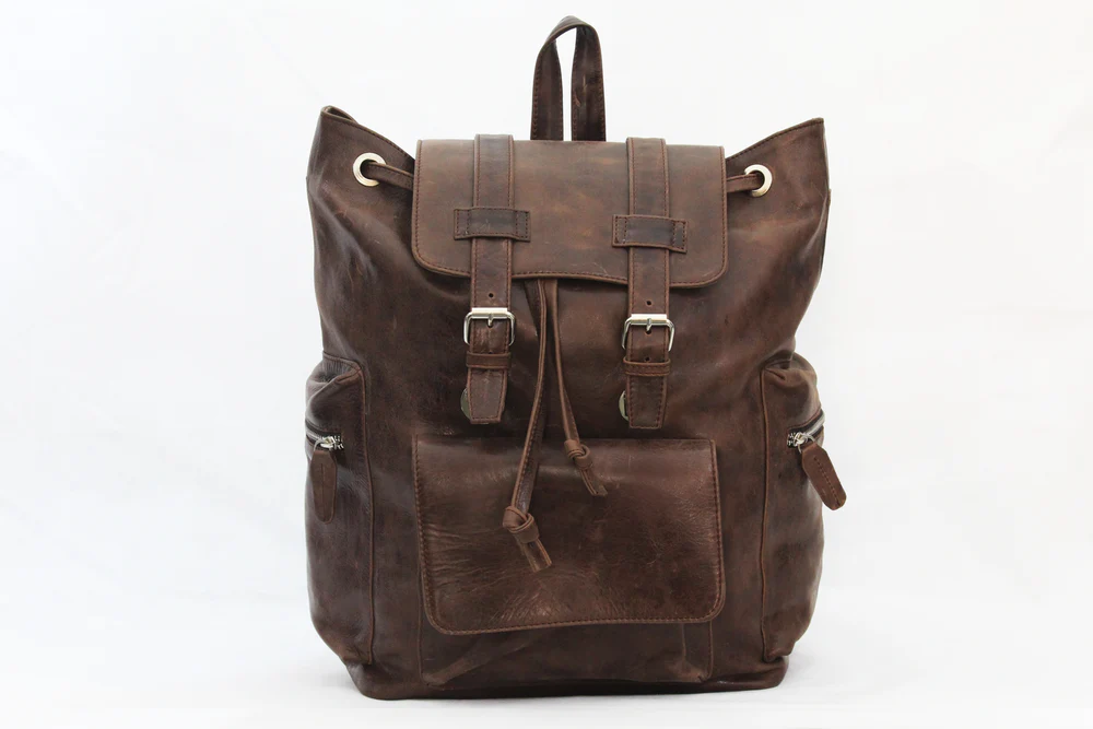 The Hilford rugged yet stylish leather backpack is crafted from high-quality cowhide, offering a perfect blend of durability and sophistication. The rich brown finish gives it a classic look, while multiple pockets and secure buckle closures add a touch of functionality. Ideal for daily commutes, travel, or as a unique accessory, this backpack caters to both style and utility.