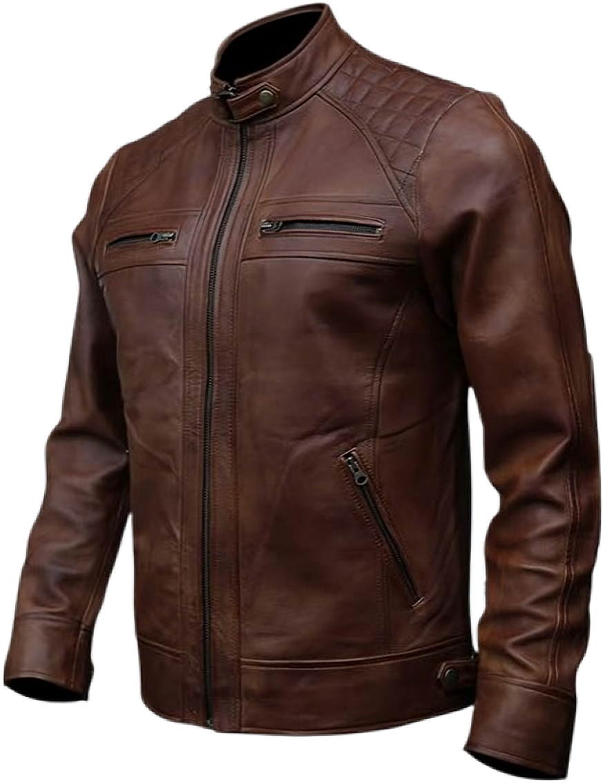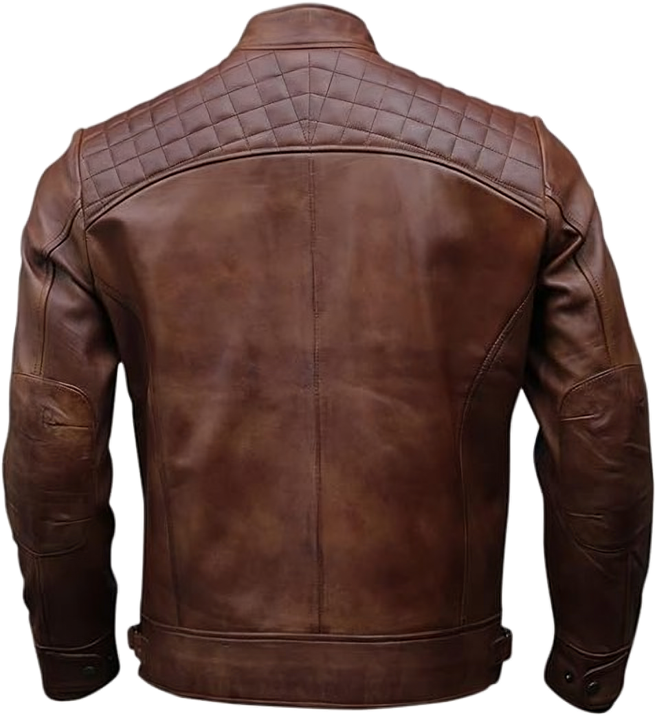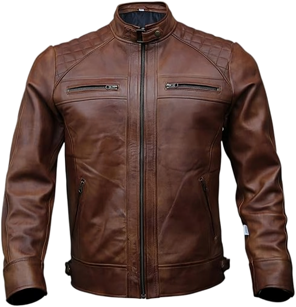 Upgrade your wardrobe with this premium men’s leather biker jacket, meticulously handcrafted by Trajidi from high-grade lambskin hides. Designed with both style and functionality in mind, this classic brown jacket features a distinctive diamond topstitch detail that sets it apart.