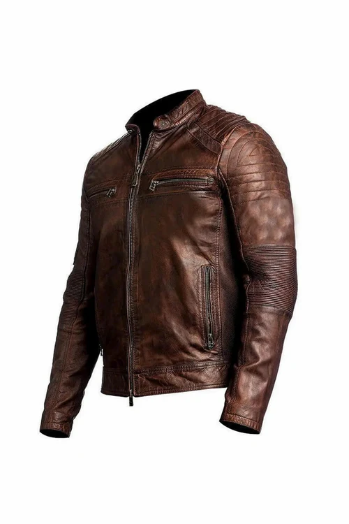 The Rebel sleek, brown leather jacket is designed with a minimalist yet rugged appeal, making it a perfect companion for a modern, refined look. The subtle detailing on the shoulders and arms adds character, while its high-quality sheepskin leather ensures durability. This cafe racer biker jacket is offering a tailored fit with both style and functionality.